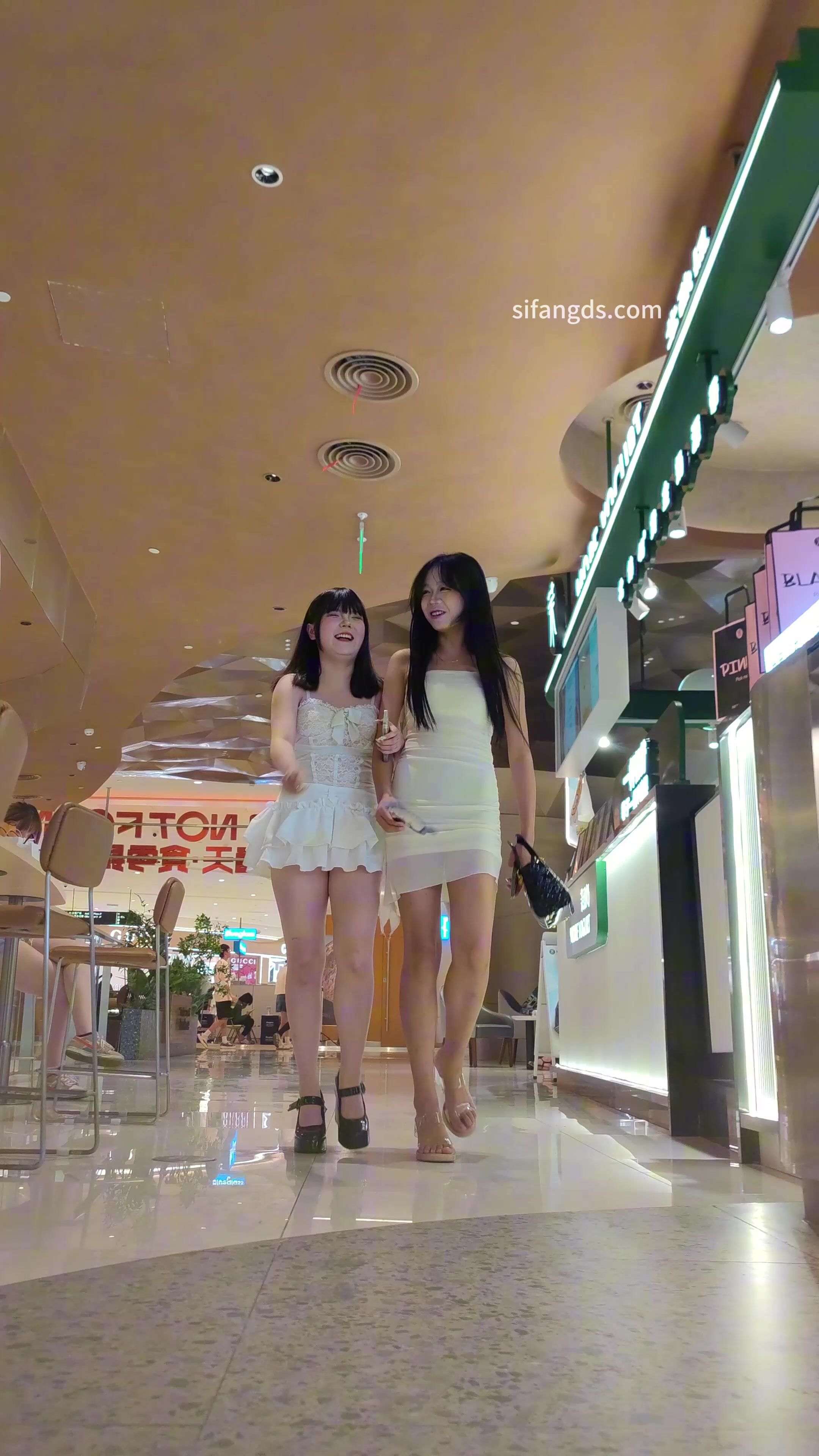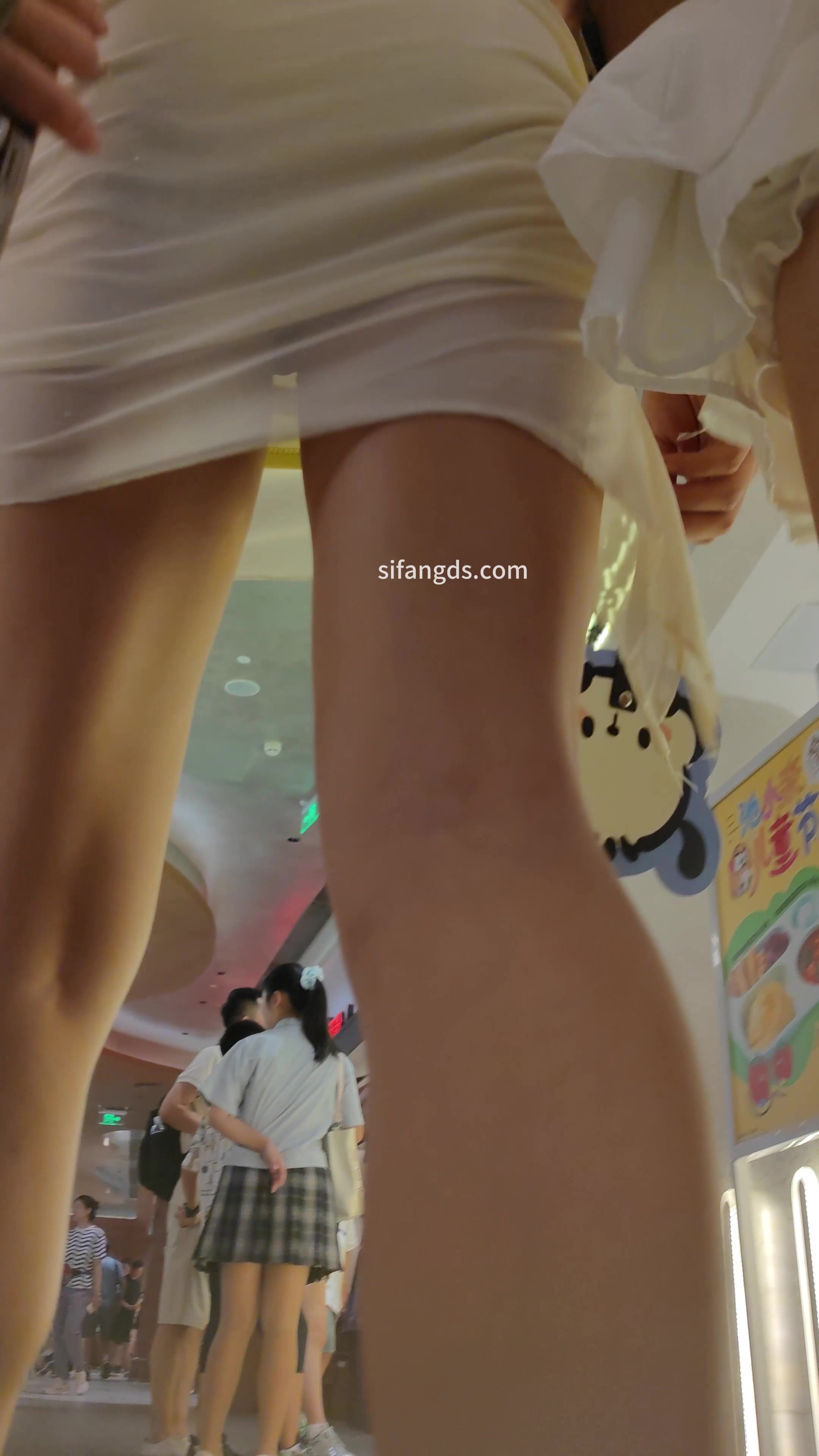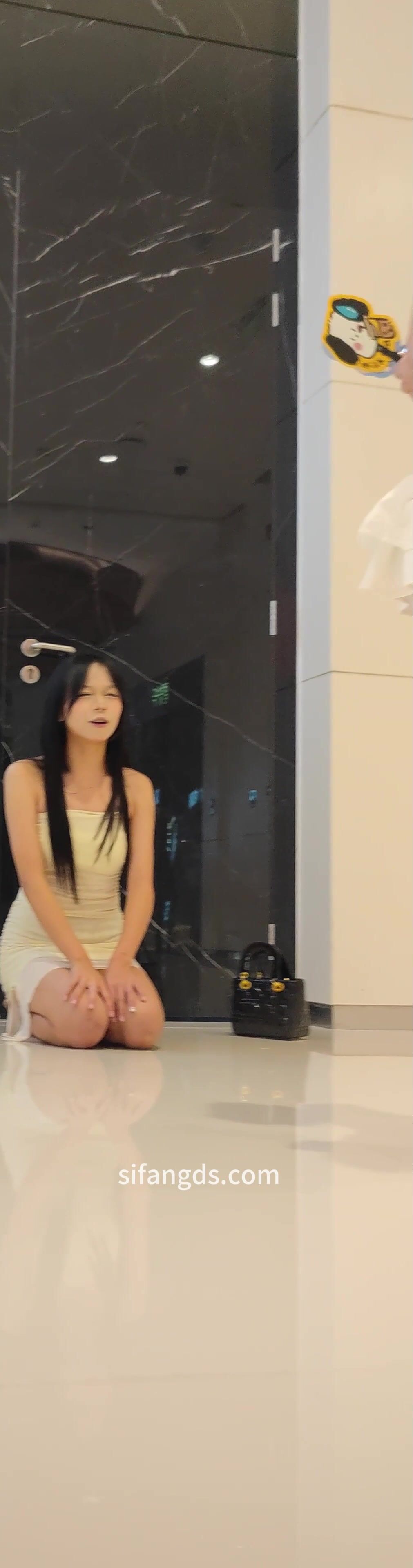 清纯小美女反差穿着性感包臀裙跪着拍照,黑色窄内